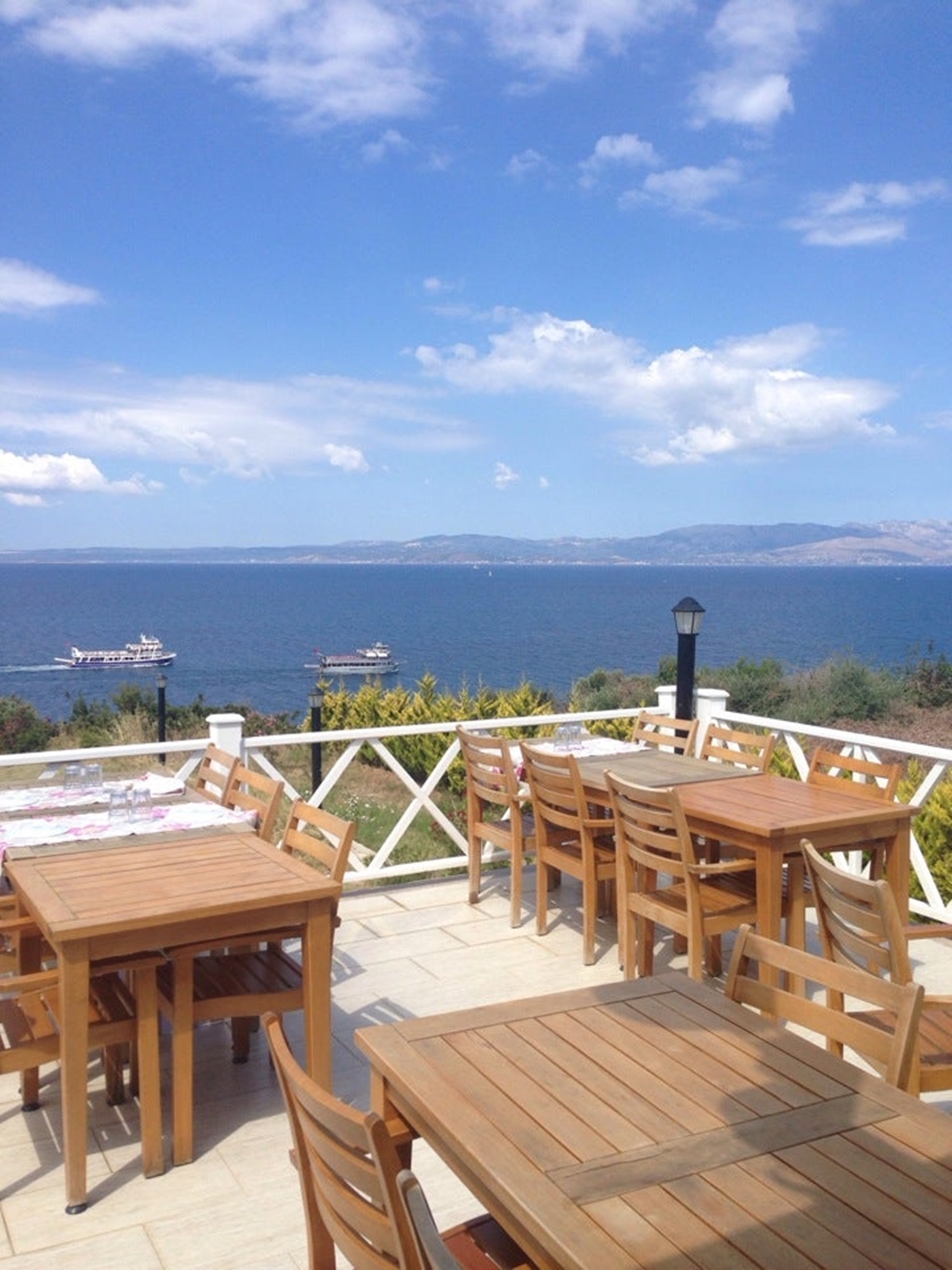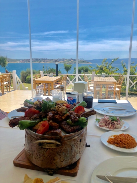 Sakız Adası manzarası eşliğinde et ve meze çeşitlerini yiyebileceğiniz bir restorandır. Sabahları, serpme kahvaltı servisi de mevcut.